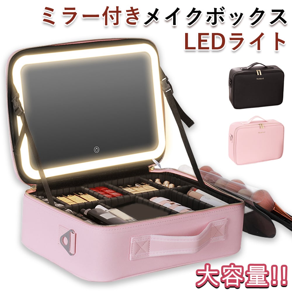 メイクボックス LEDライト 鏡付き 大容量 化粧箱 ミラー付き コスメ収納 コスメケース ボックス コスメボックス メイクポーチ 化粧ボックス 化粧品 無段階明るさ調節 誕生日 プレゼント 防水 旅行 2色