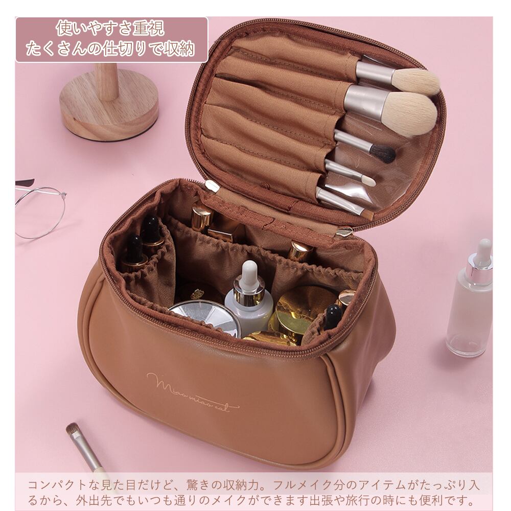 内部には小物を細かく分けてキレイに収納できるポケットや、ブラシなどのスティックコスメなどの収納に便利なスペースも完備。
