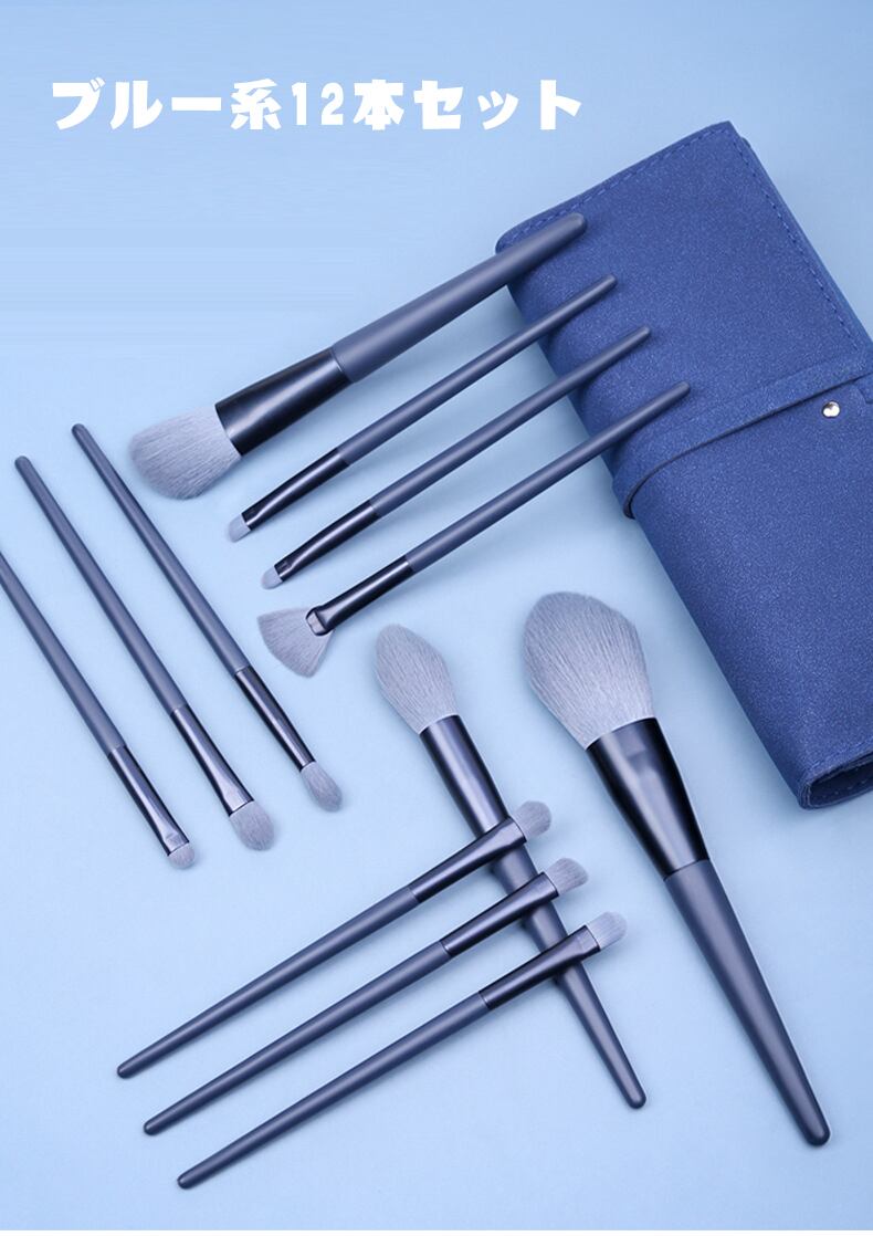 メイクブラシ 12本セット 収納ポーチ付き 柔らかいメイクブラシ 高級繊維毛 粉含み良い 肌に優しい 敏感肌適用