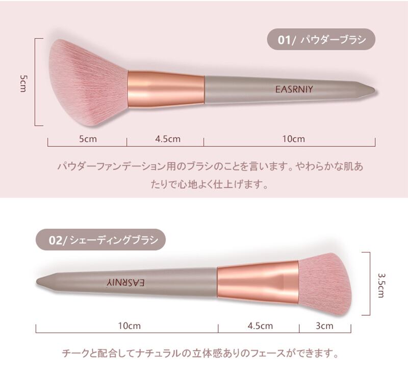 【専用のメイクブラシセット】 ブラシはパウダーの含みがよく、持続して使えます。実用的なニーズと美しいデザインを追求し、ブラシの種類、形、カラーなどあらゆる要素を厳選しました。製品には、パウダーブラシ、シェーディングブラシ、ファンデーションブラシ、チークブラシ、ハイライトブラシ、アイシャドウブラシ、コンシーラーブラシ、目?ブラシ、アイブロウブラシ、ディテールブラシ、リップブラシ、などが含まれています。材質からデザインまで、全てのディテールを考慮に入れた、上質な化粧筆セット。このメイクブラシは、貴方をより美しく、よりエレガントに 彩ります。
