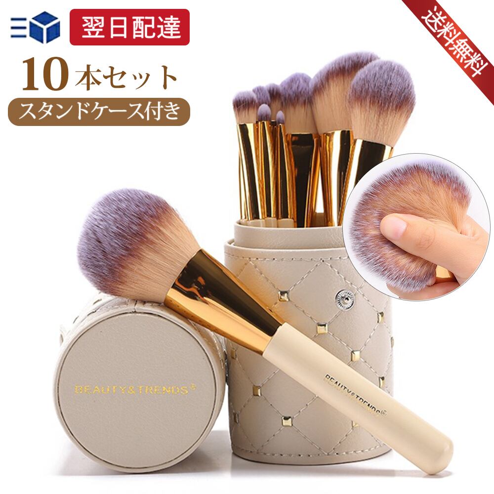 貴族ゴールド メイクブラシ 10本セット 柔らかいメイクブラシ 厳選した極細毛 肌に優しい 描きやすい 初心者も適用 敏感肌適用 携帯用 人気メイク道具 収納バケツは