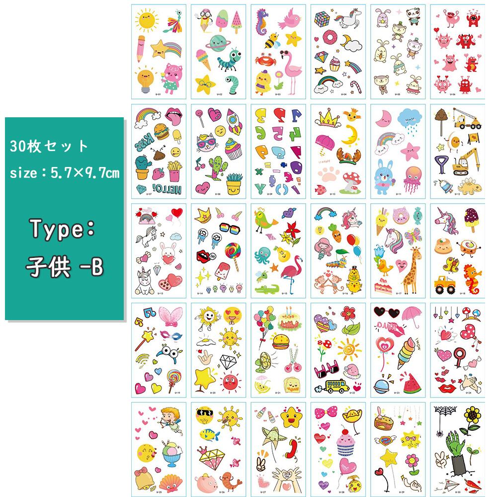 タトゥーシール 30枚セット 虹色 子供 ユニコーンフェイスシール 誕生日パーティー小物、コスプレ仮装小道具 しちごさん 文化祭 学园祭用 顔用 腕 長持ち 簡単に貼る
