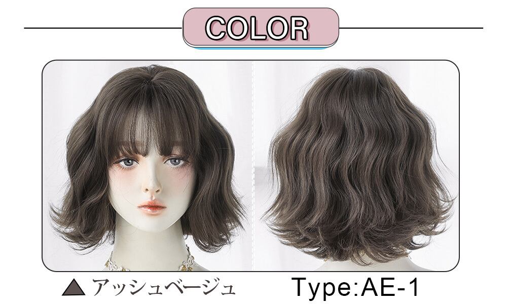 肩に掛かるボブヘアーのウィッグです。かわいらしい自然なゆるふわ髪を再現することができます。小顔効果抜群のボブはひし形シルエットですっきりとした印象に。ナチュラルなヘアスタイルなので、様々なファッションに合わせやすいウィッグです。