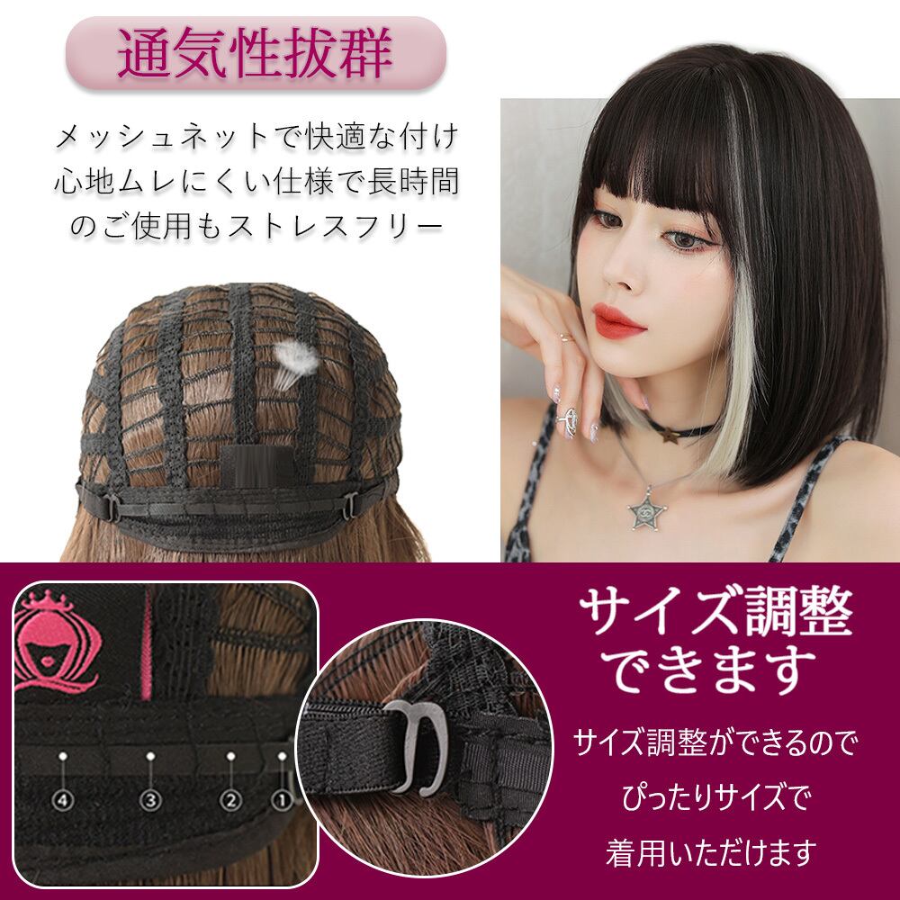 ボブ ウィッグ ボブ 黒髪 フルウィッグ 自然 ミディアム フルウィッグ グラデーション インナーカラー ストレート かつら 女性 コスプレ 医療用 普段使い 可愛い おしゃれ 送料無料