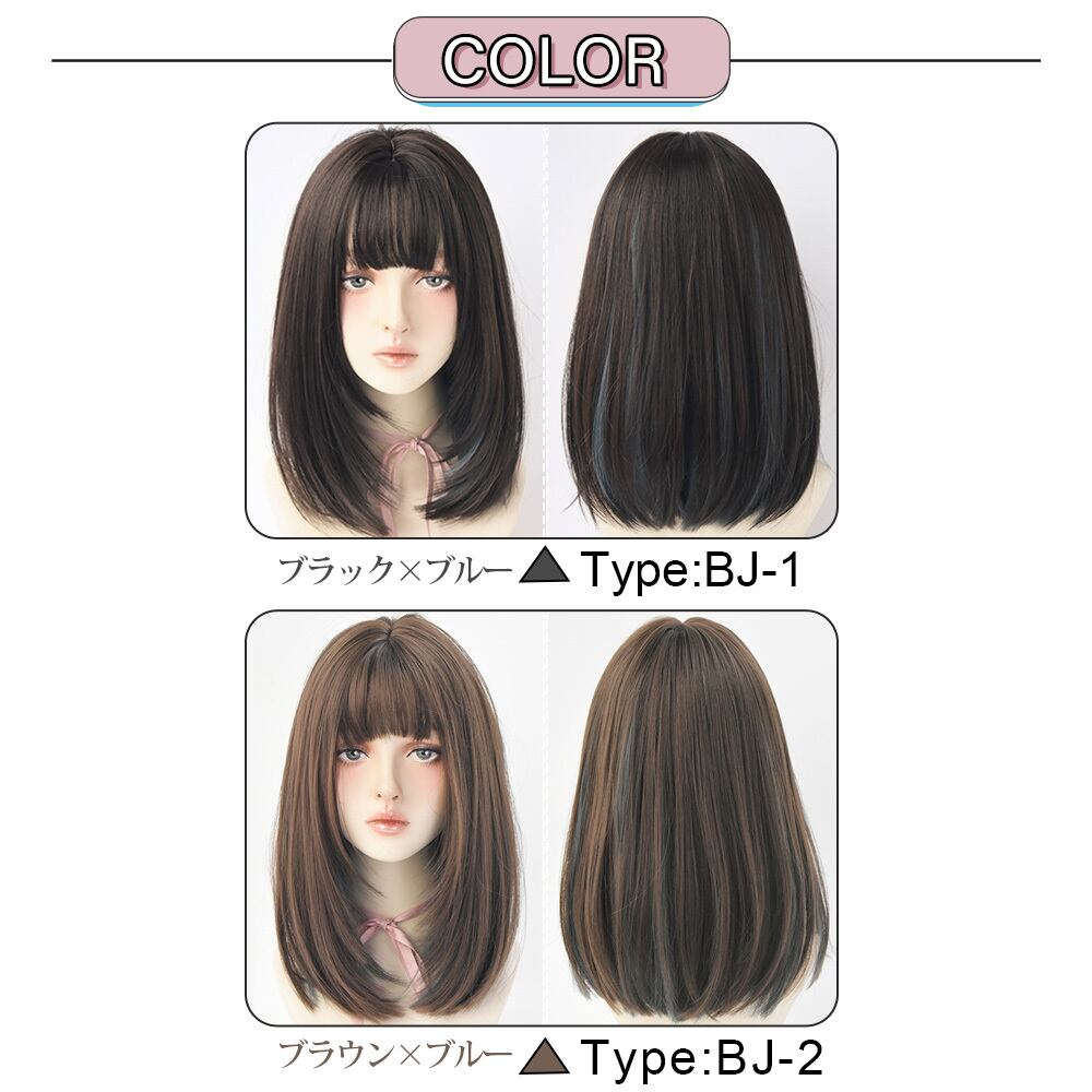 ボブ ウィッグ ボブ 黒髪 フルウィッグ 自然 ミディアム フルウィッグ グラデーション インナーカラー ストレート かつら 女性 コスプレ 医療用 普段使い 可愛い おしゃれ 送料無料