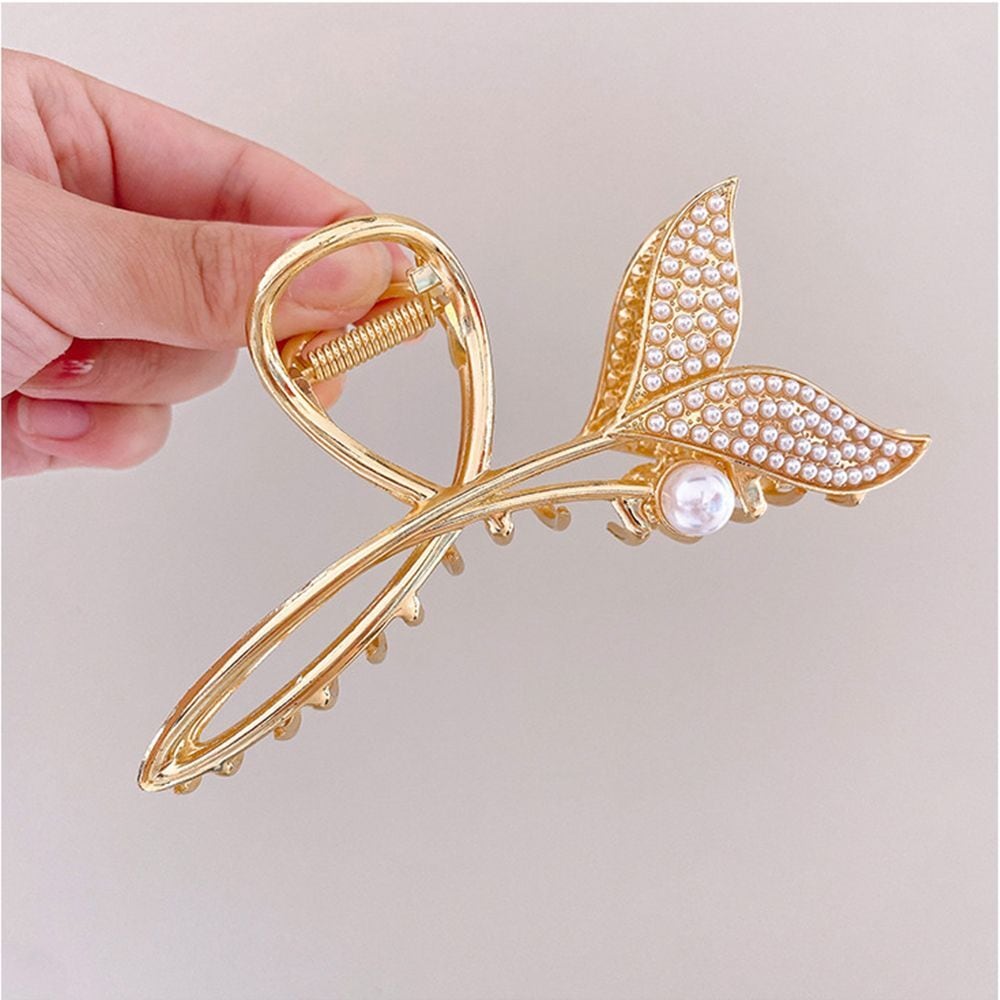 ヘアアクセサリー ゴールド マーメイドデザイン パールヘアクリップ ラインストーン 髪飾り 上品 韓国風 長い髪 大人 女性 流行カジュアル プレゼント 結婚式 パーティ