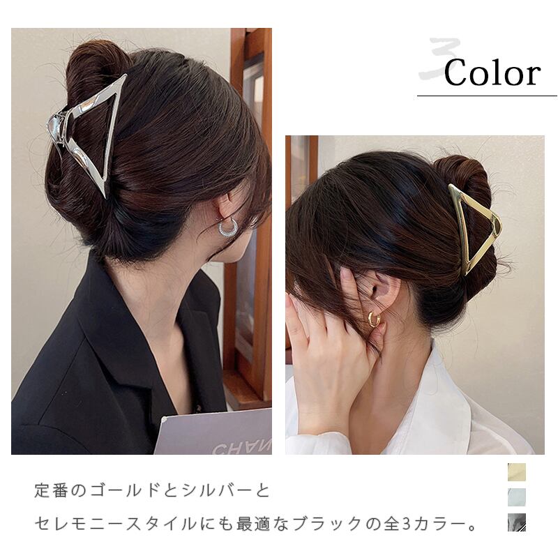 ヘアクリップ ゴールド シルバー ブラック 三角バンスクリップ まとめ髪 大きめ ヘアアクセサリー 上品 韓国風 大人 長い髪 春夏 トレンド デイリー カジュアル 女性
