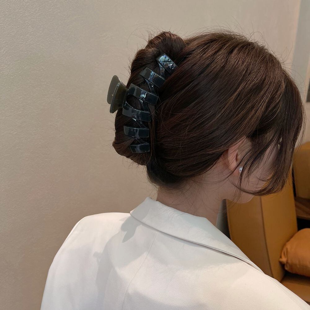 【商品情報】 美しいシルエットは、ヘアアクセにこだわりたい女性にぴったりのアイテムです。エナメルのような艶やかなアクリル素材で、トレンド感あるニュアンスカラーが魅力的。ハーフアップにぴったりな程よいサイズ感で使いやすいヘアクリップです。