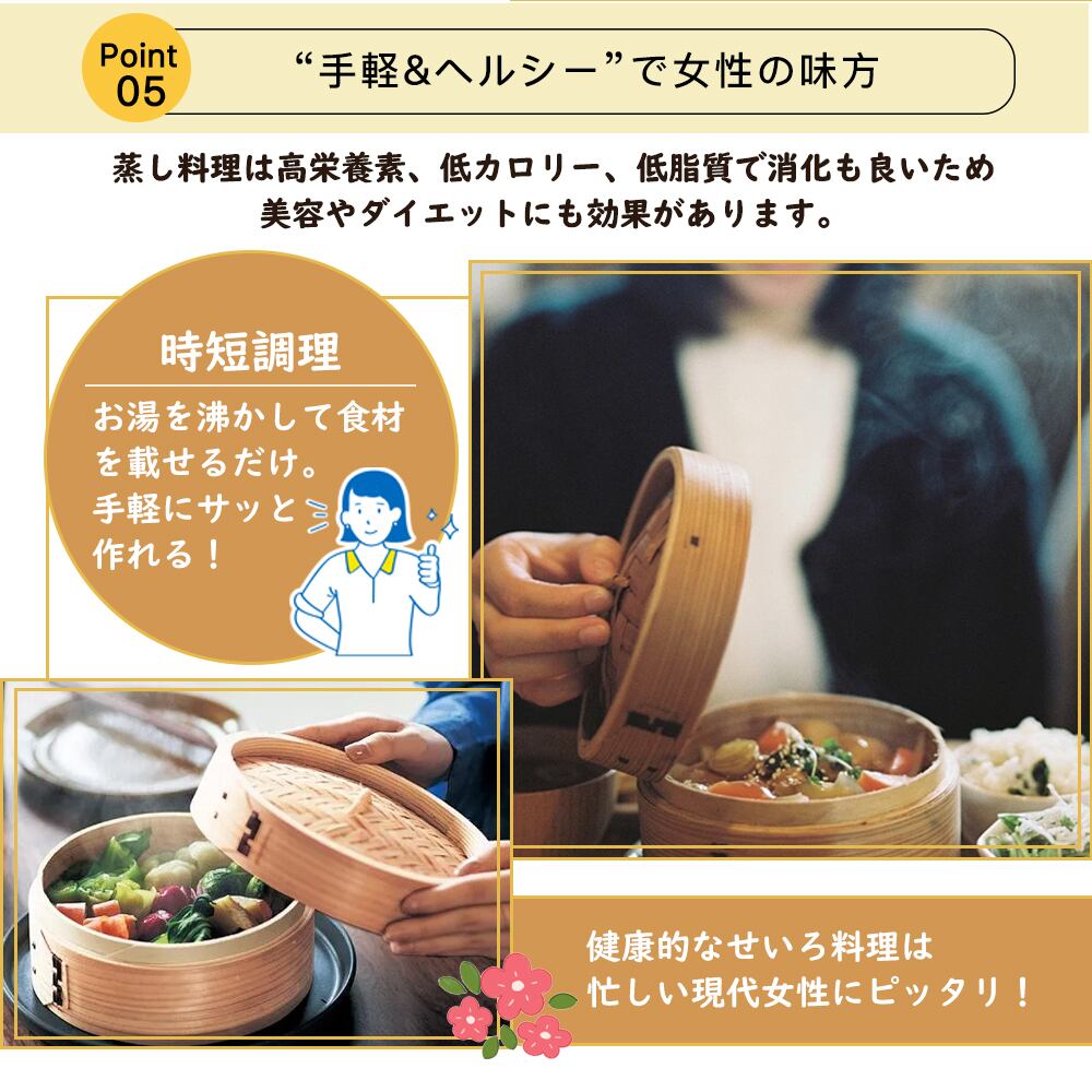 【便利な二段式】 二段せいろは重ねて蒸せば効率よく時短調理が可能です。