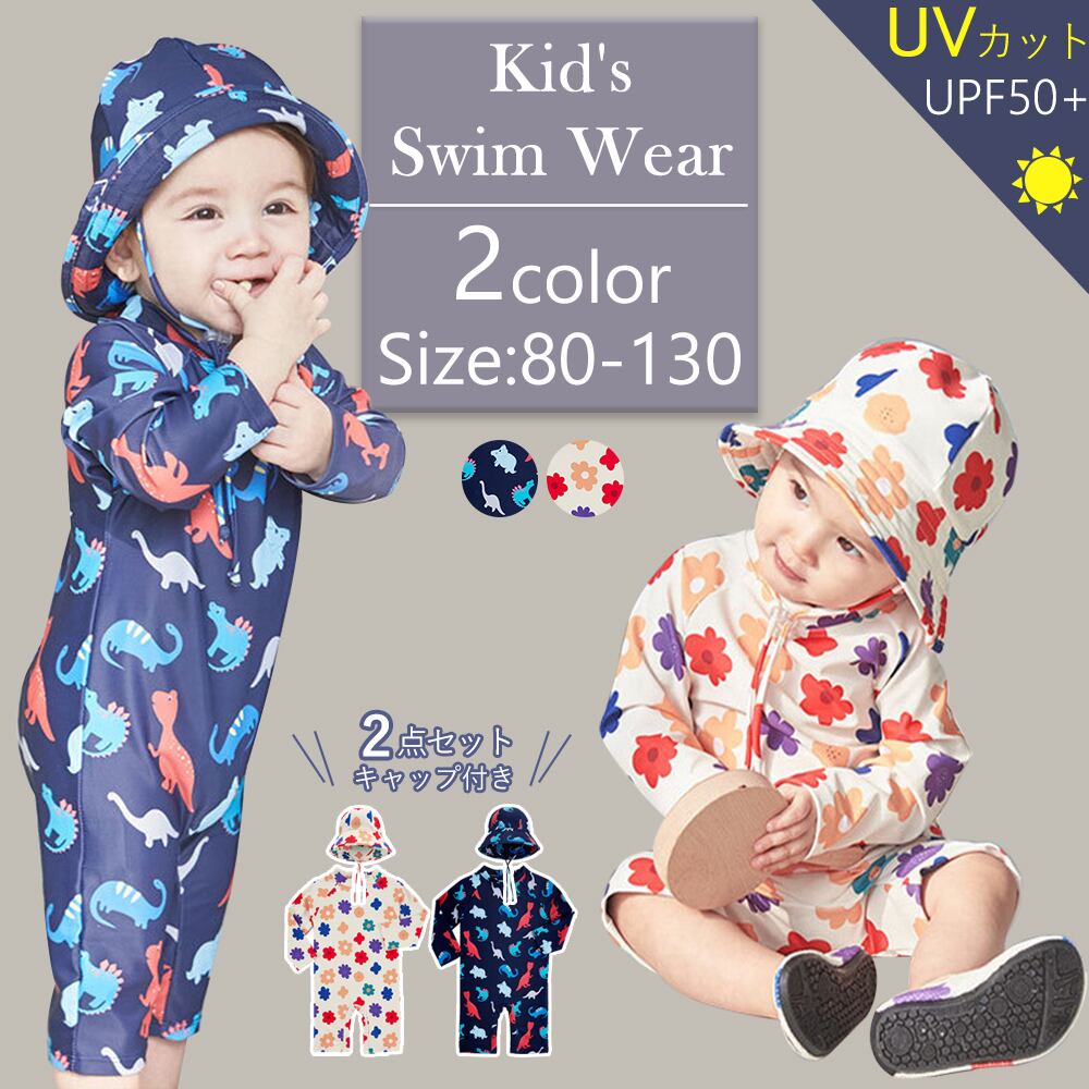 ベビー 水着 キッズ キャップつき 2点セット UV ロンパース 女の子 男の子 子供 ジュニア ベビースイミング かわいい 80cm 90cm 100cm 110cm 120cm 130cm ラッシュガード スイムウェア 海プール ビーチ 紫外線対策