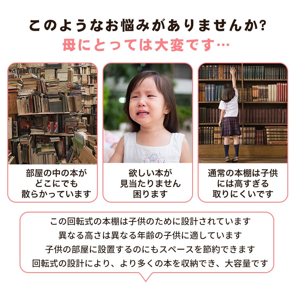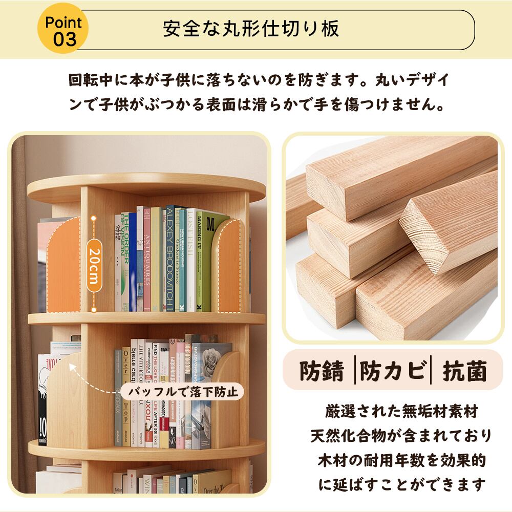 本棚 木製 回転 回転式本棚 おすすめ 天然木 3段 4段 5段 大容量 スリム A4が入る高さ コミックラック 絵本棚 漫画 収納 回転ラック ブックシェルフ 収納棚 CDラック DVDラック 送料無料