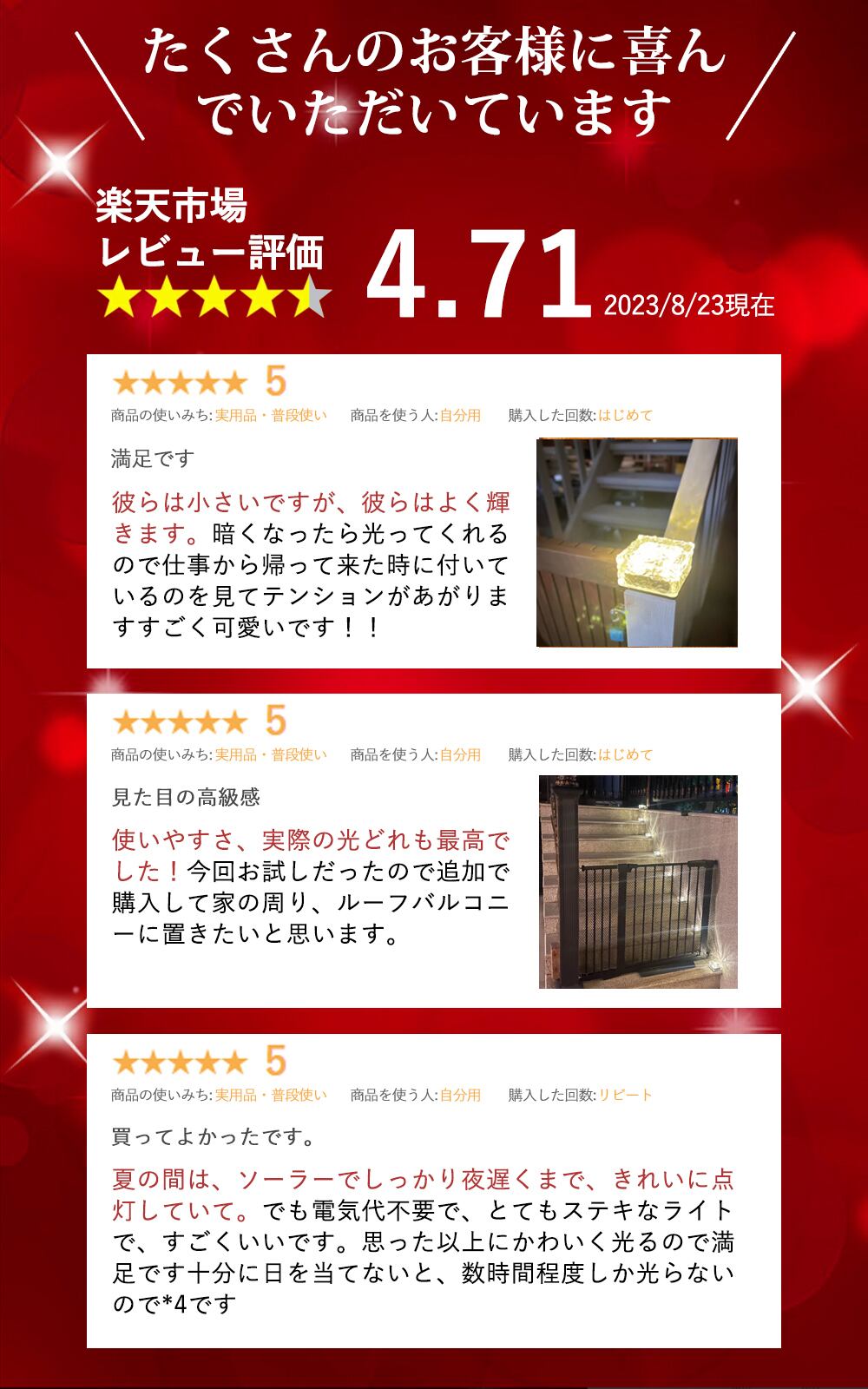 スポット型のソーラーライトや照明とは違い、歩行者を誘導する「やんわり」としたおしゃれなイメージとなっています。
