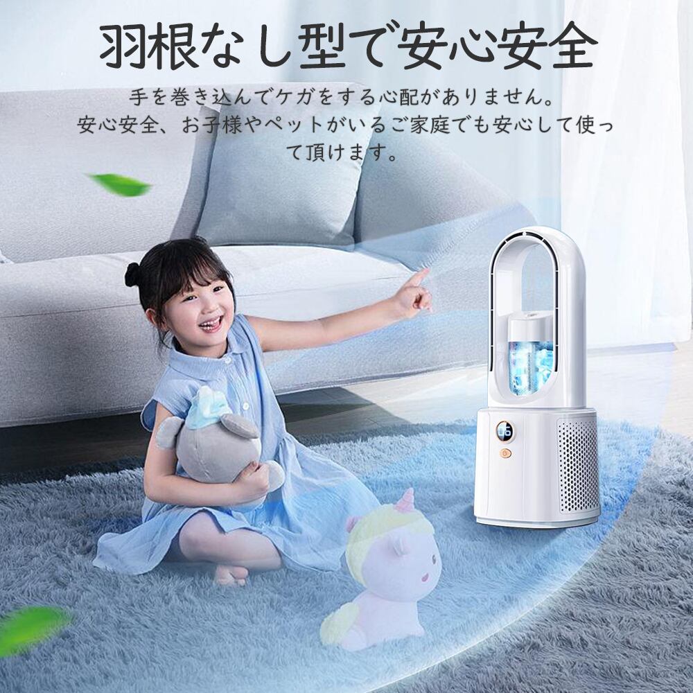 【商品情報】 【1台3役】このブレードレスファンは、穏やかな風で空気を冷やし、肌の潤いを保つだけでなく、空調、冷却、スプレー加湿機能も統合しています。